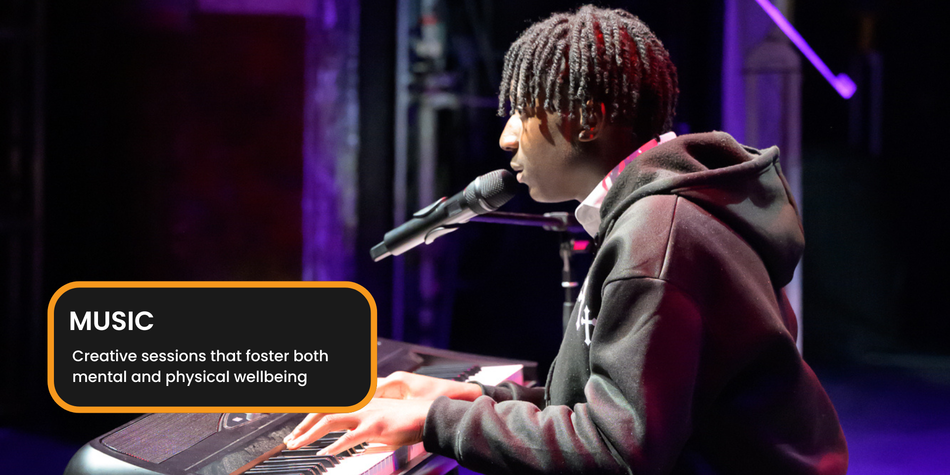 Every week our young people receive music lessons and studio time with professionals. Music is one of the easiest ways that help us bring young people together and provide them with a perfect platform to express their emotions and feelings.